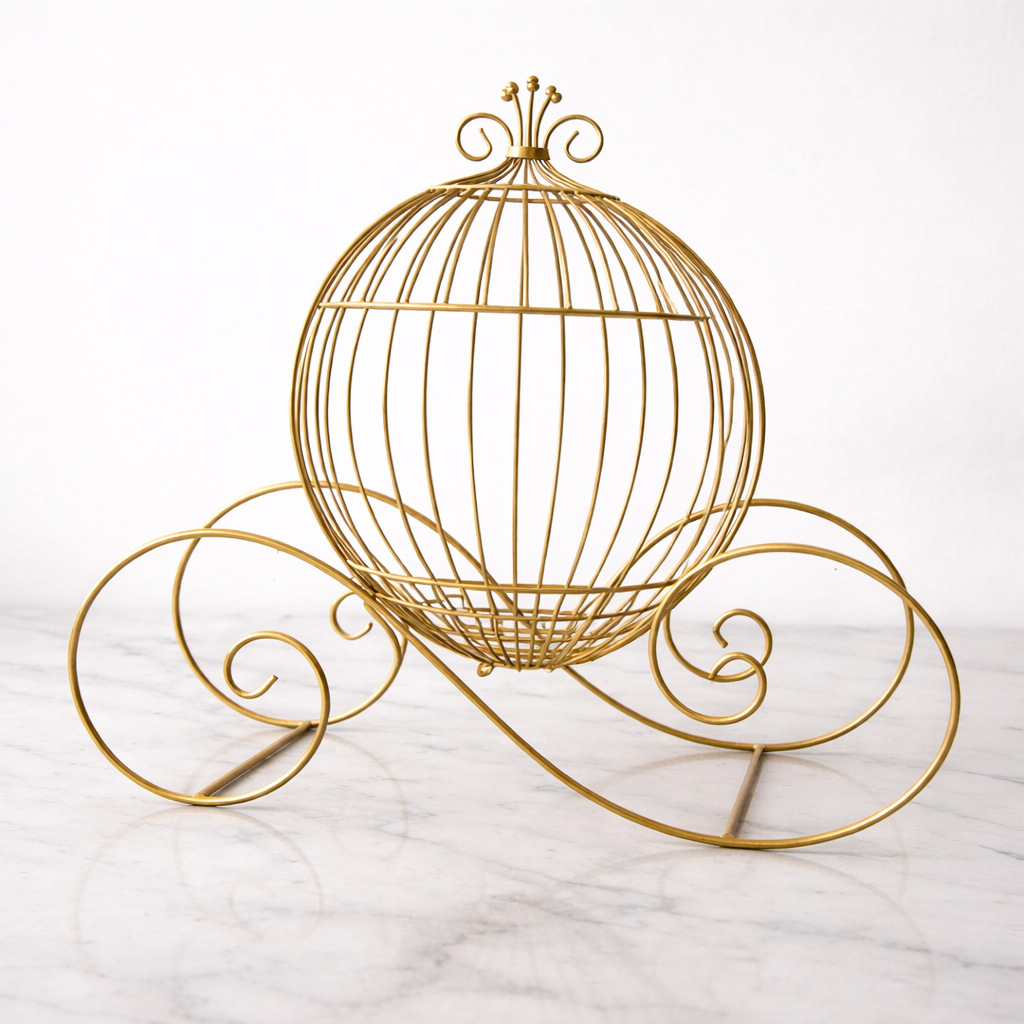 Create a magical fairytale atmosphere with our Gold Cinderella Carriage Coach Centrepiece (frame only). This stunning decorative piece is perfect for a princess wedding theme, Disney-inspired celebration, or elegant event styling. Fill the carriage with flowers, candles, or your own creative décor to make it truly unique.
